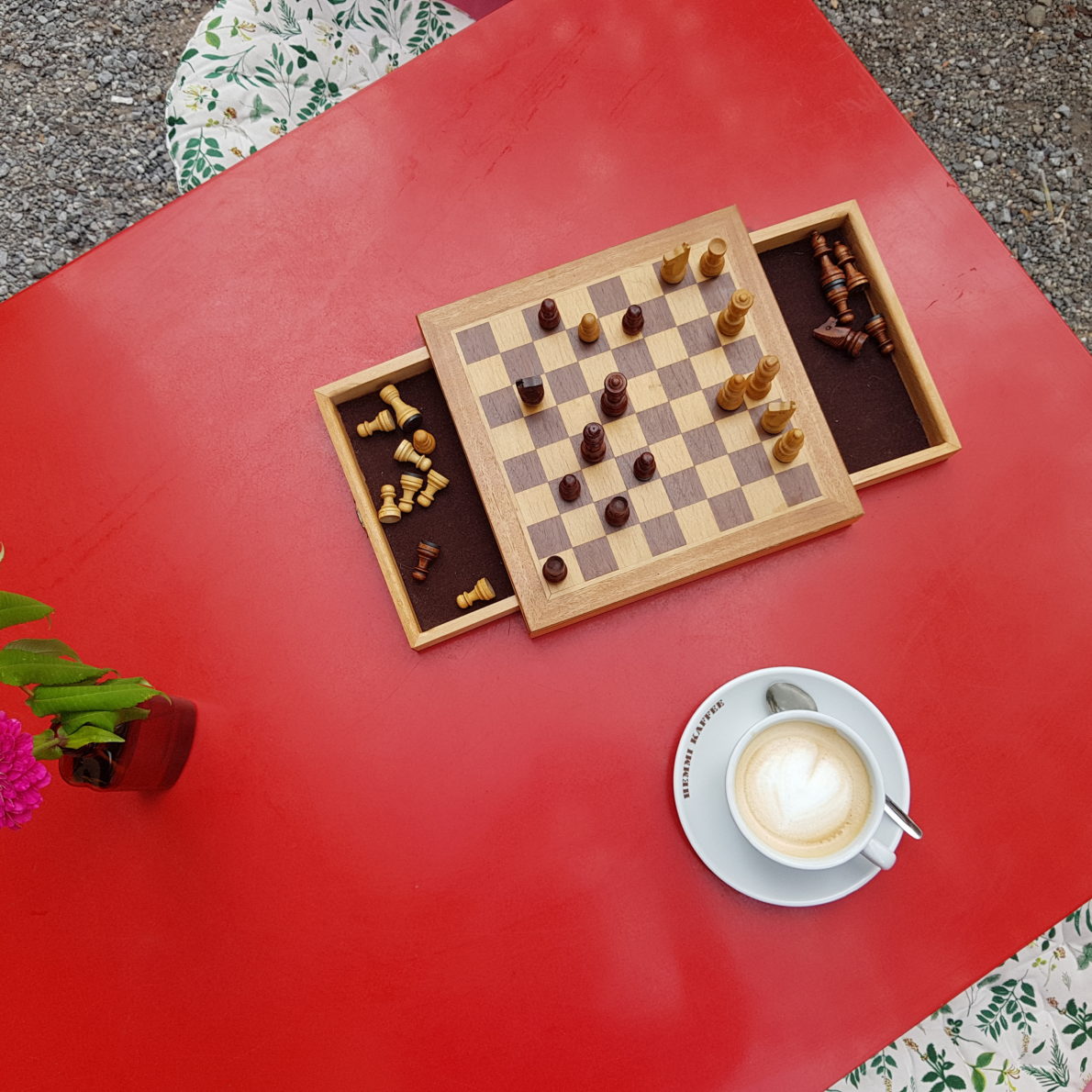 Ausserhalb der Öffnungszeiten des Cafés steht Mi–Fr von 10:00–13:30 Uhr in der Musikstube eine Kaffeemaschine zur Selbstbedienung bereit.