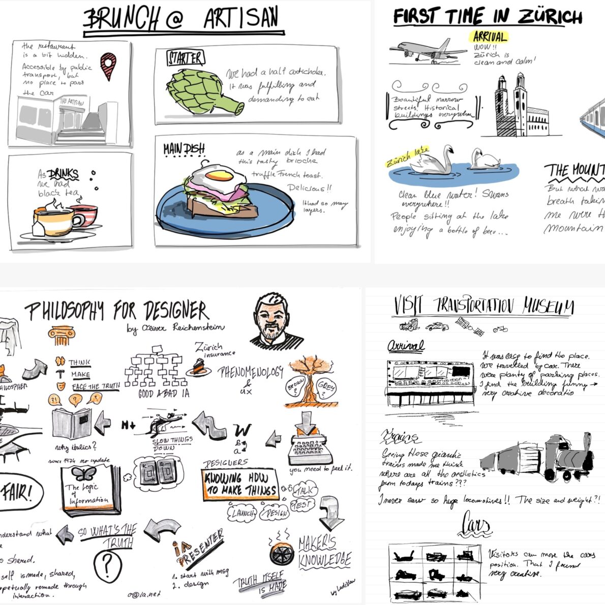 – Reisen, Essen, Fernsehsendungen und Wochenenderlebnisse in Sketchnotes festzuhalten.