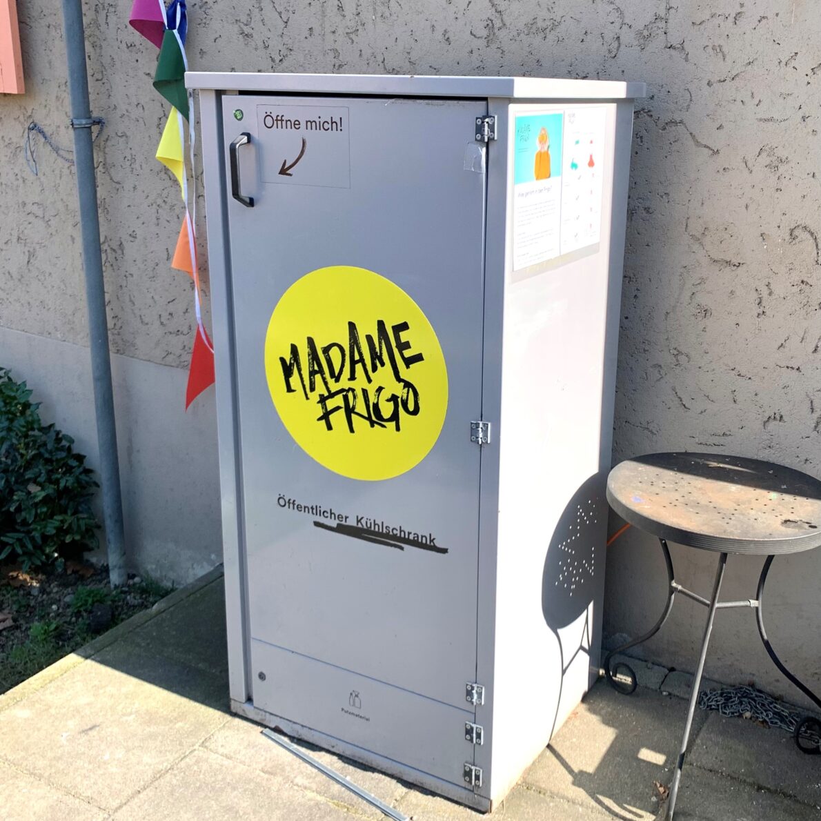 Die Personen, welche die Kühlschränke betreiben, übernehmen keine Haftung. Das Gleiche gilt für den Verein Madame Frigo.